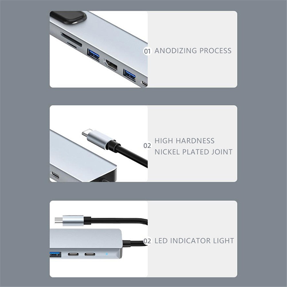2017L Type-C to Type-Cx2+USB2.0+HD+USB3.0+TF / SD+Network Card 100Mbps USB Hub Laptop Phone Docking Station