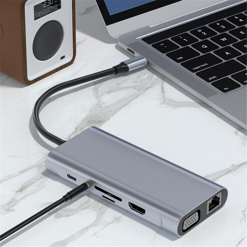 2110 11-in-1 Type-C Docking Station 4K*2K@30Hz Multi-Port Hub USB Data Reading Card Slots Adapter