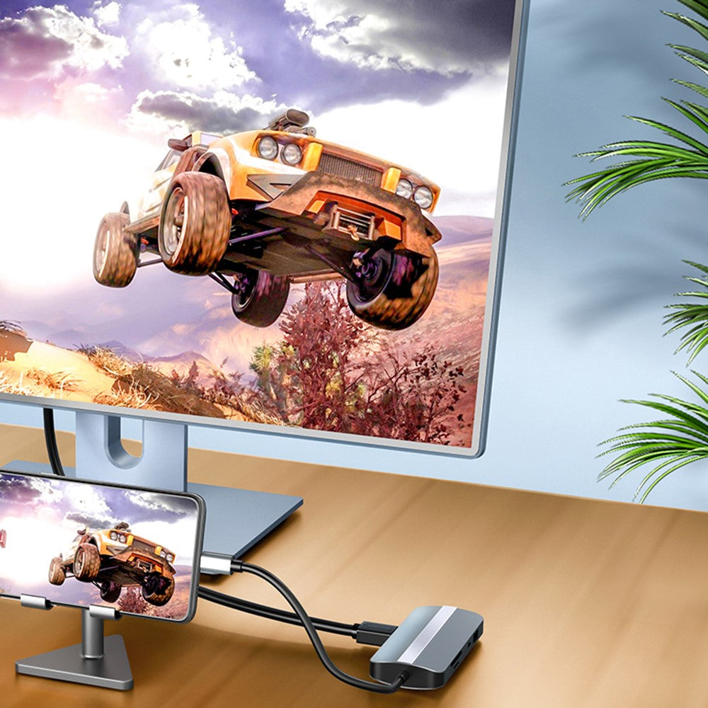 2206 For MacBook 9-in-1 Type-C Multi-Interface Hub Splitter HD+USB3.0+USB2.0+PD+USB-C+RJ45+SD+TF Slots Adapter Docking Station