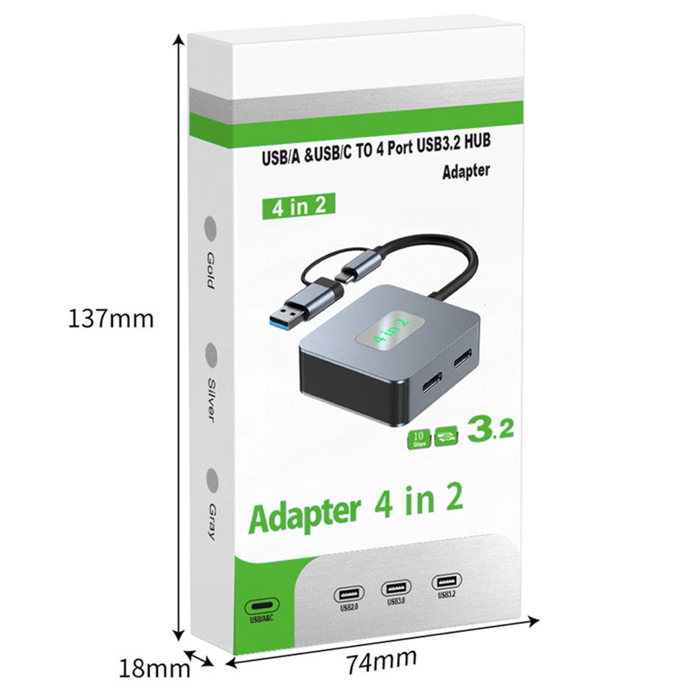 2320A Type-C / USB 4-in-1 USB Hub 2xTypc-C3.2 + 2xUSB3.2 10Gbps Data Transfer Adapter