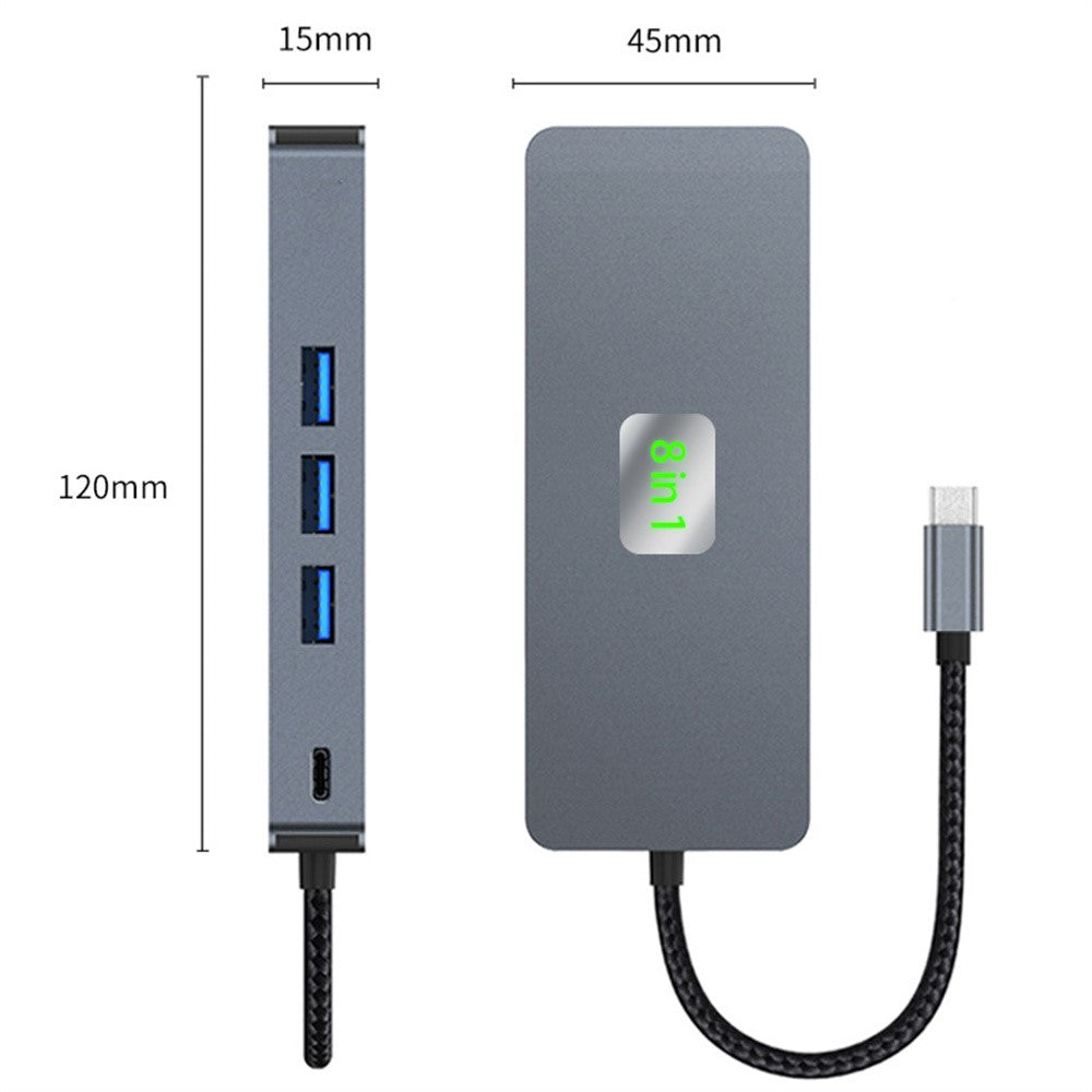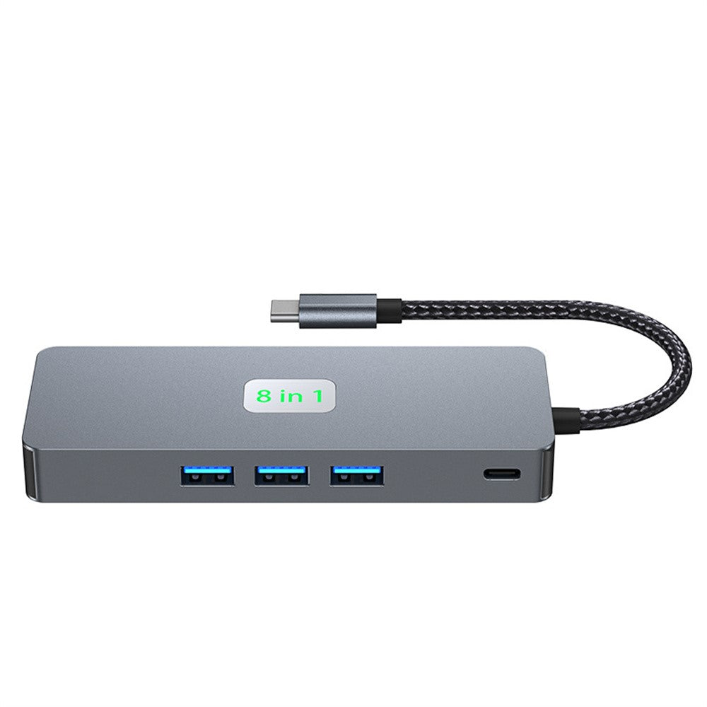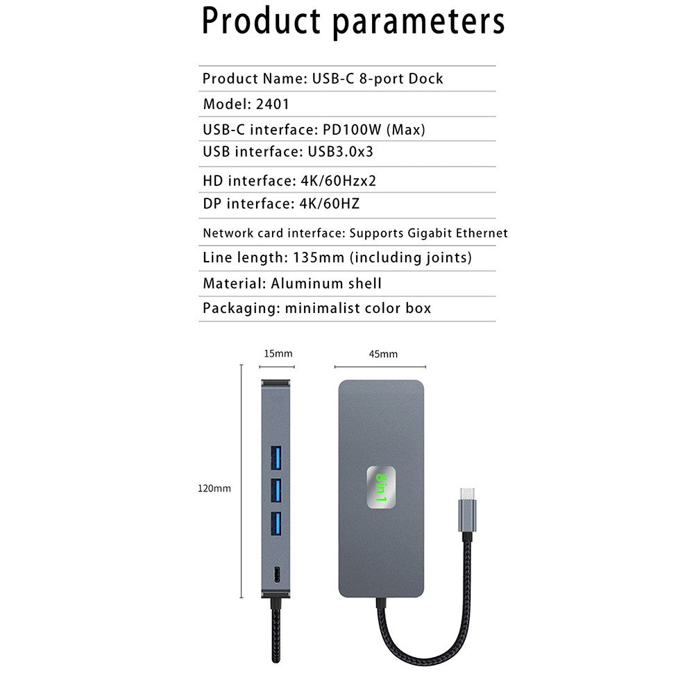 2401 8-in-1 Type-C Hub Docking Station with Gigabit Ethernet, 3x USB 3.0, 2x HD, DP, PD 100W Port