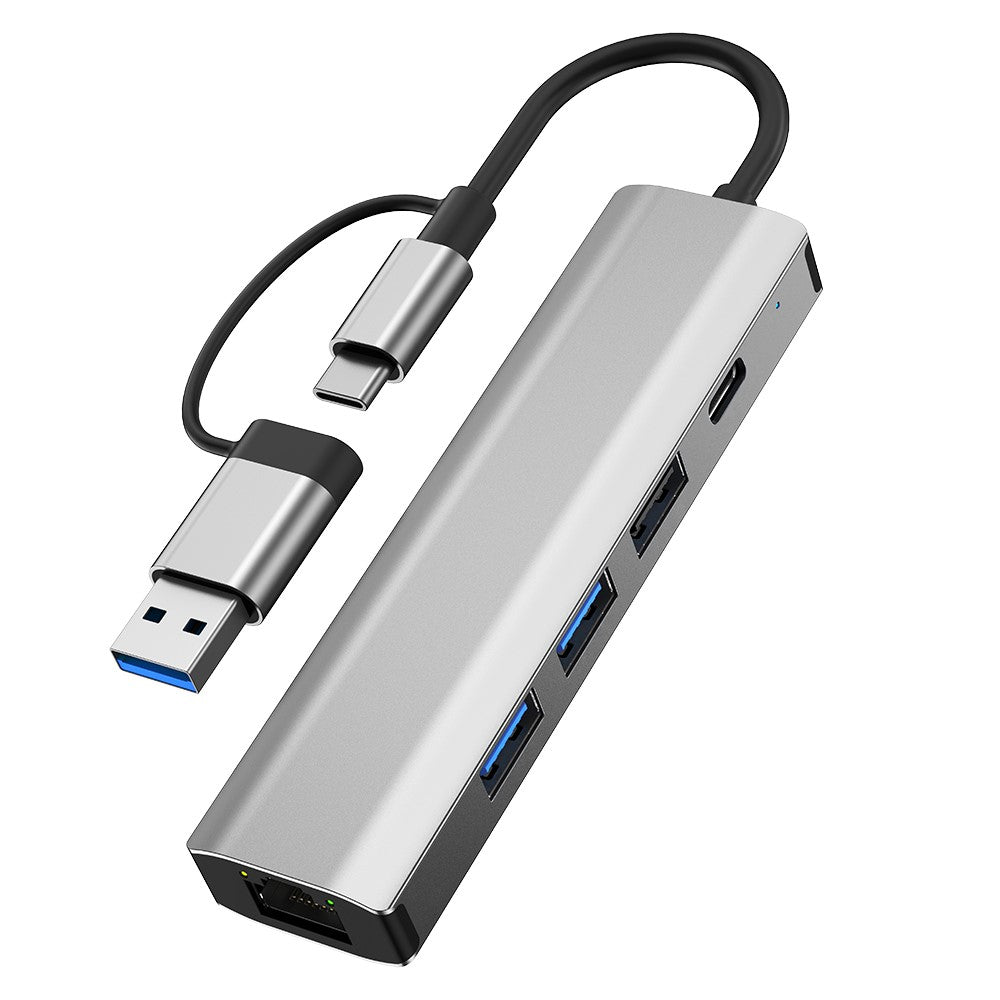 2501 USB-C / USB to Ethernet Adapter RJ45 Gigabit Network Card with USB3.2 USB2.0 USB-C3.2 DC5V Ports Converter