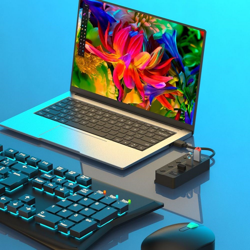 5302 4 in 1 USB 2.0 Hub With Individual Switches Plug and Play 4 Ports Splitter High Speed 480Mbps Data Transfer