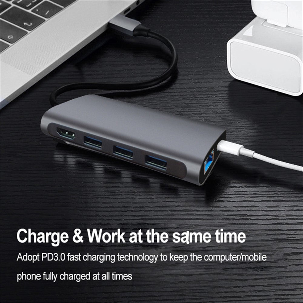 8-in-1 Type C Hub Adapter USB 3.0 RJ45 SD/TF Card Reader HDMI Type-C Port Docking Station