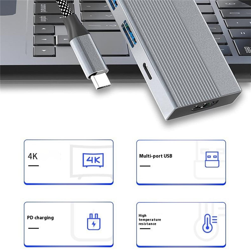 8-in-1 Type-C Hub Aluminum Alloy Docking Station, 4K HD + RJ45 + USB-C + 2 USB 3.0 + TF / SD Card Reader