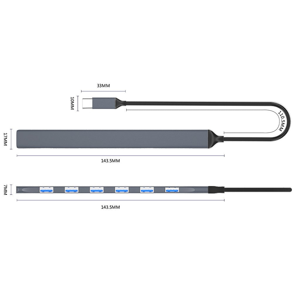 - The Type-C Hub offers one USB 3.0 port and six USB 2.0 ports, allowing you to connect multiple devices simultaneously