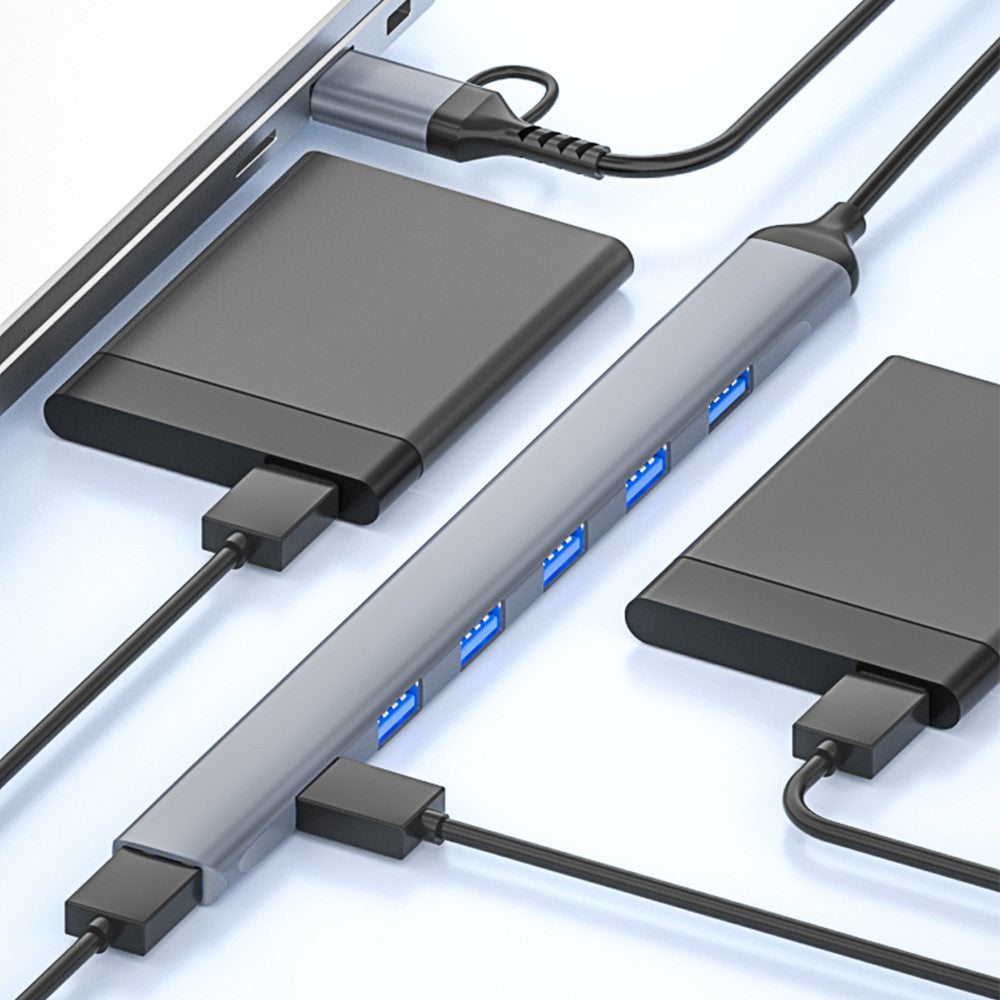 ADS-303D 7-in-1 Multifunctional Hub USB + Type-C to USB 3.0 + 6x USB 2.0 Splitter