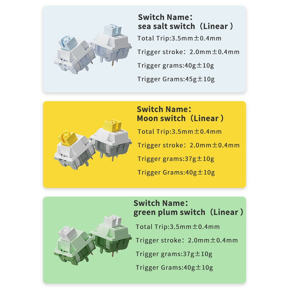 - 【Premium Mechanical Switches】Equipped with Flying Fish linear switches, offering a smooth typing experience with a total travel of 3.6mm and an actuation force of 42g