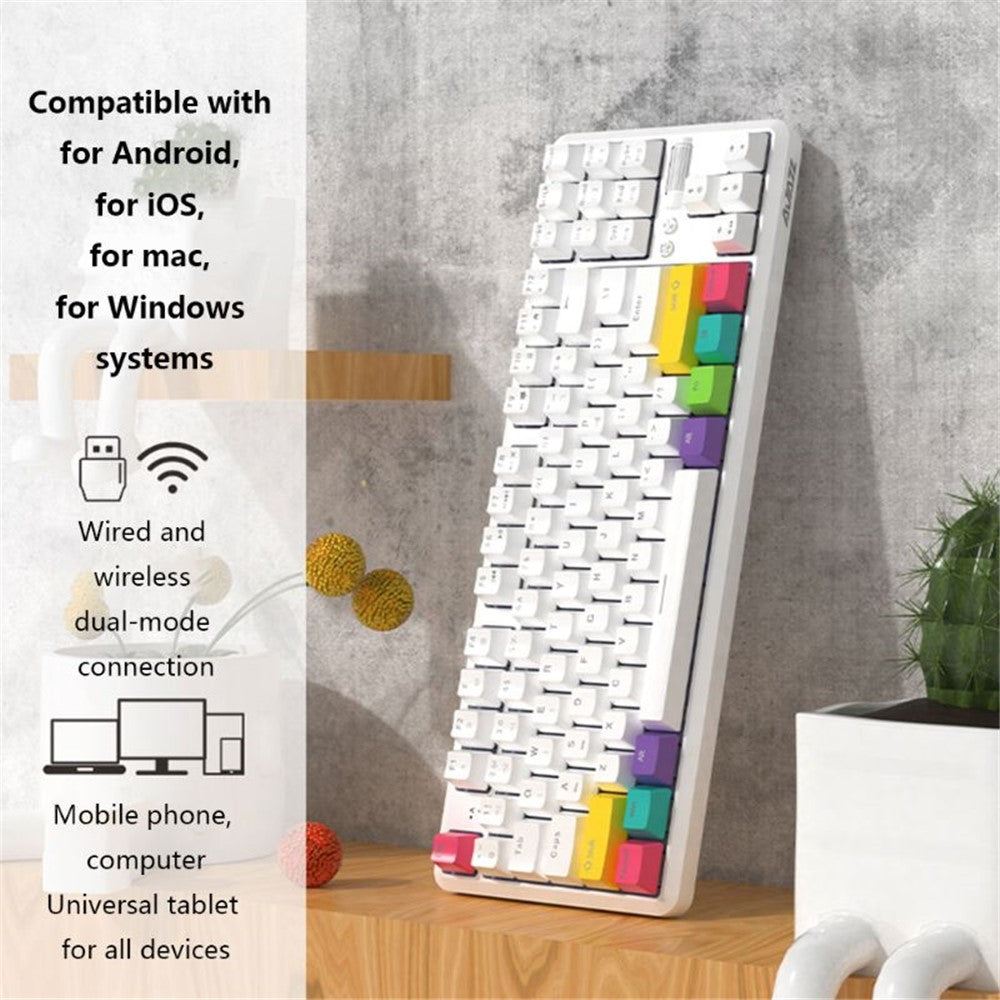 AJAZZ K870T Wired/Wireless Bluetooth-compatible Keyboard 87 Keys Dual Mode Keyboard with RGB Backlight for Phone Laptop