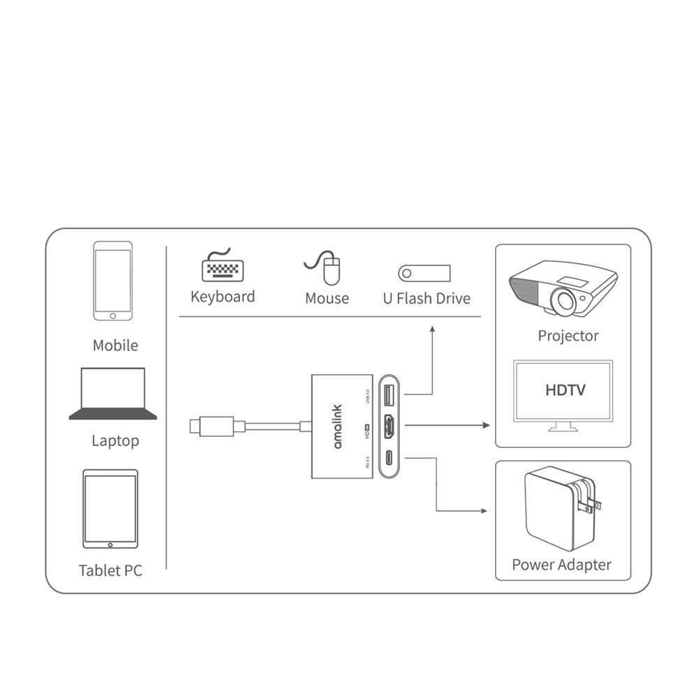 AMALINK AL-9175D Type C to HDMI + USB 3.0 + PD 3.0 Adapter Multi-port Hub