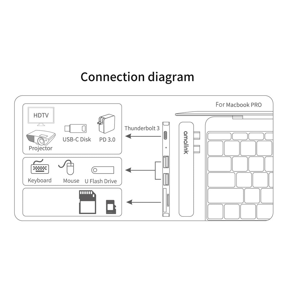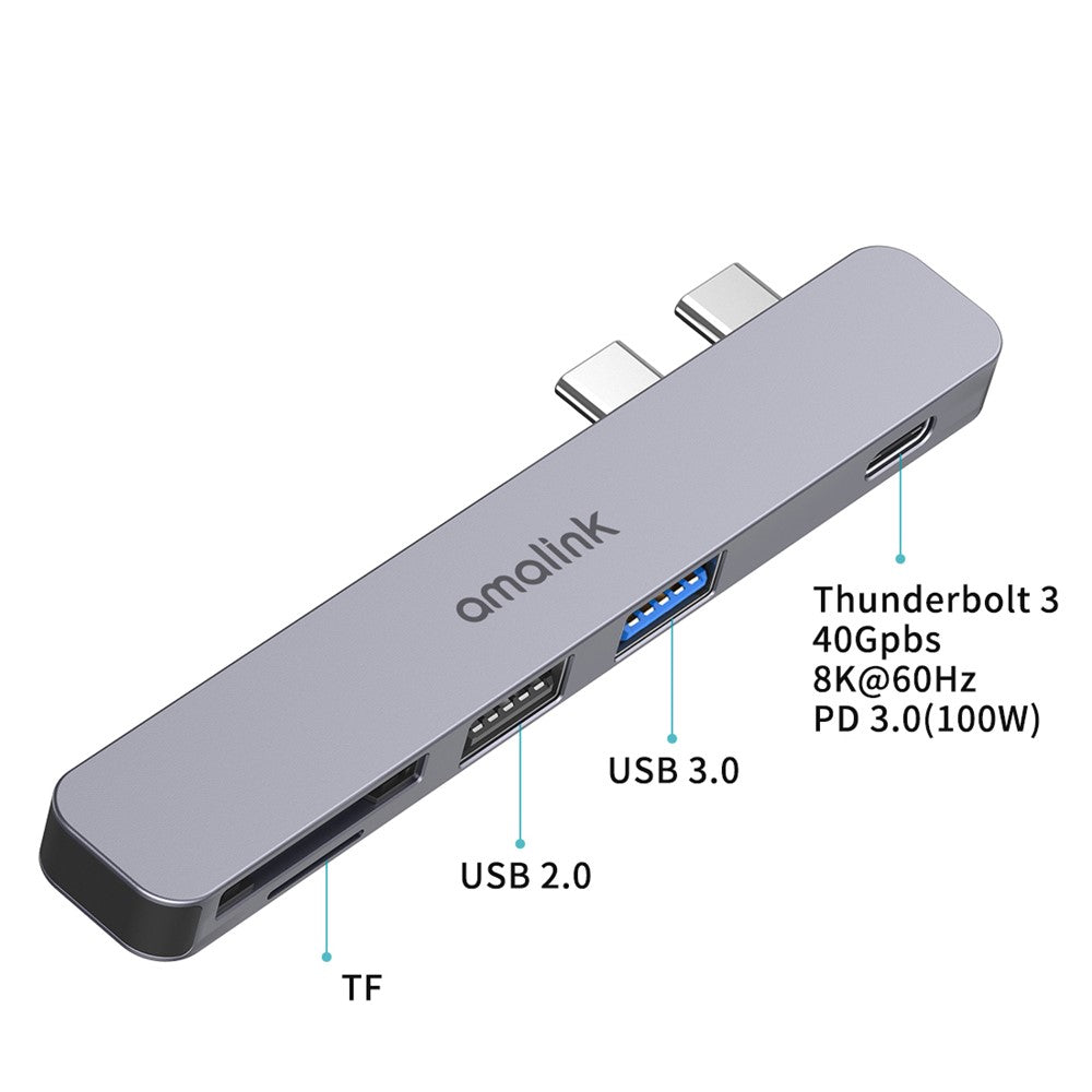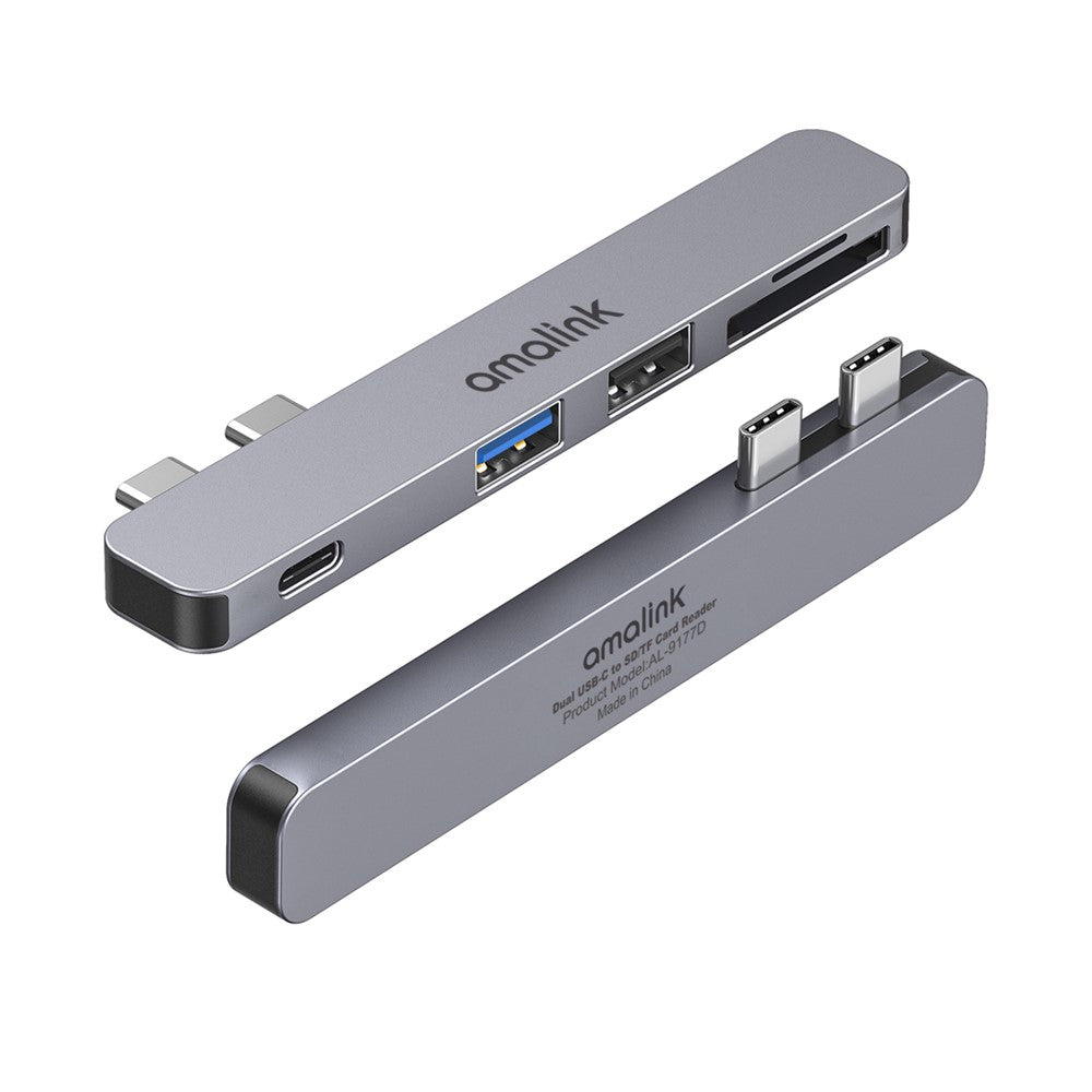 AMALINK AL-9177D Multi-port Hub Dual Type C to Thunderbolt 3 USB 2.0 3.0 Converter TF Card Reader Adapter