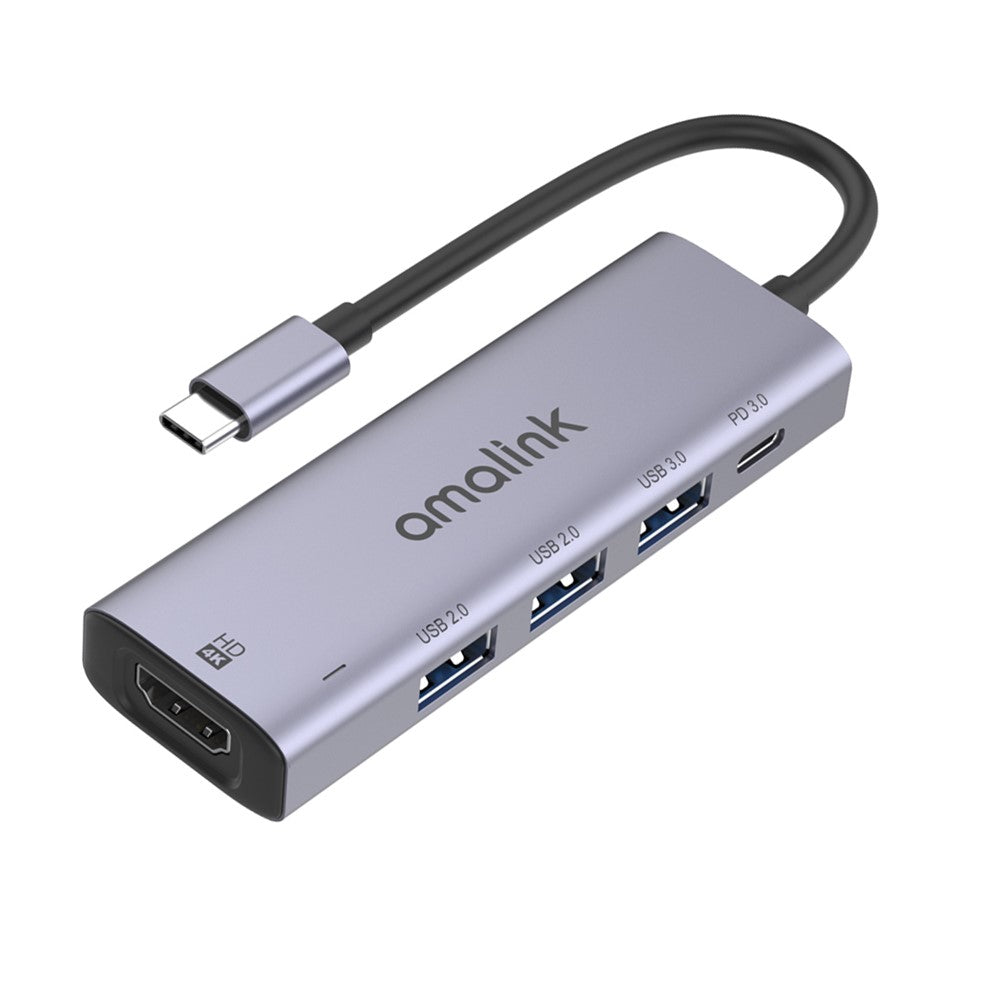 AMALINK AL-95123D 5 in 1 86W Power Delivery Type C Hub 4K HDMI 2x USB 2.0 3.0 PD 3.0 Adapter for Mac OS X Microsoft Windows