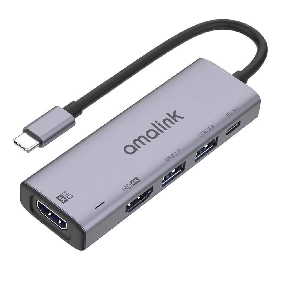 AMALINK AL-95126D 5 in 1 Type C Hub 76W Power Delivery 2x HDMI+USB 2.0 PD 3.0 Adapter for Mobile Phone Laptop
