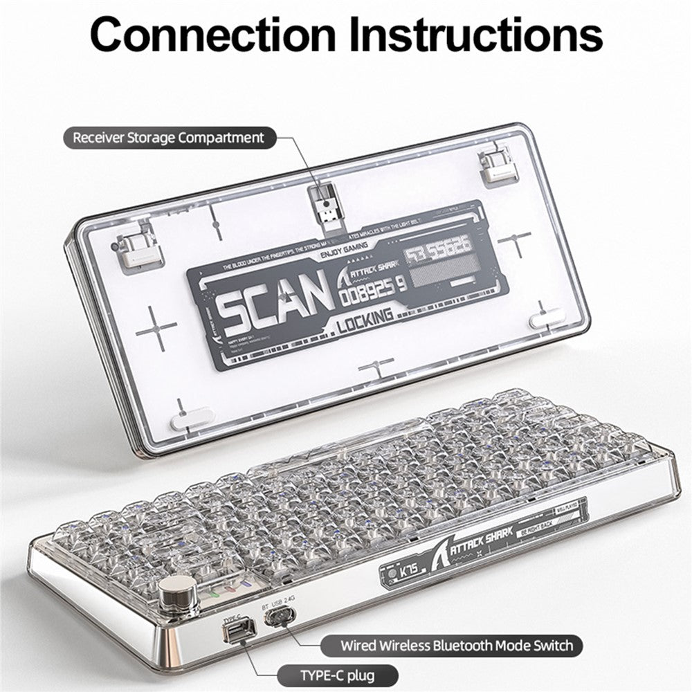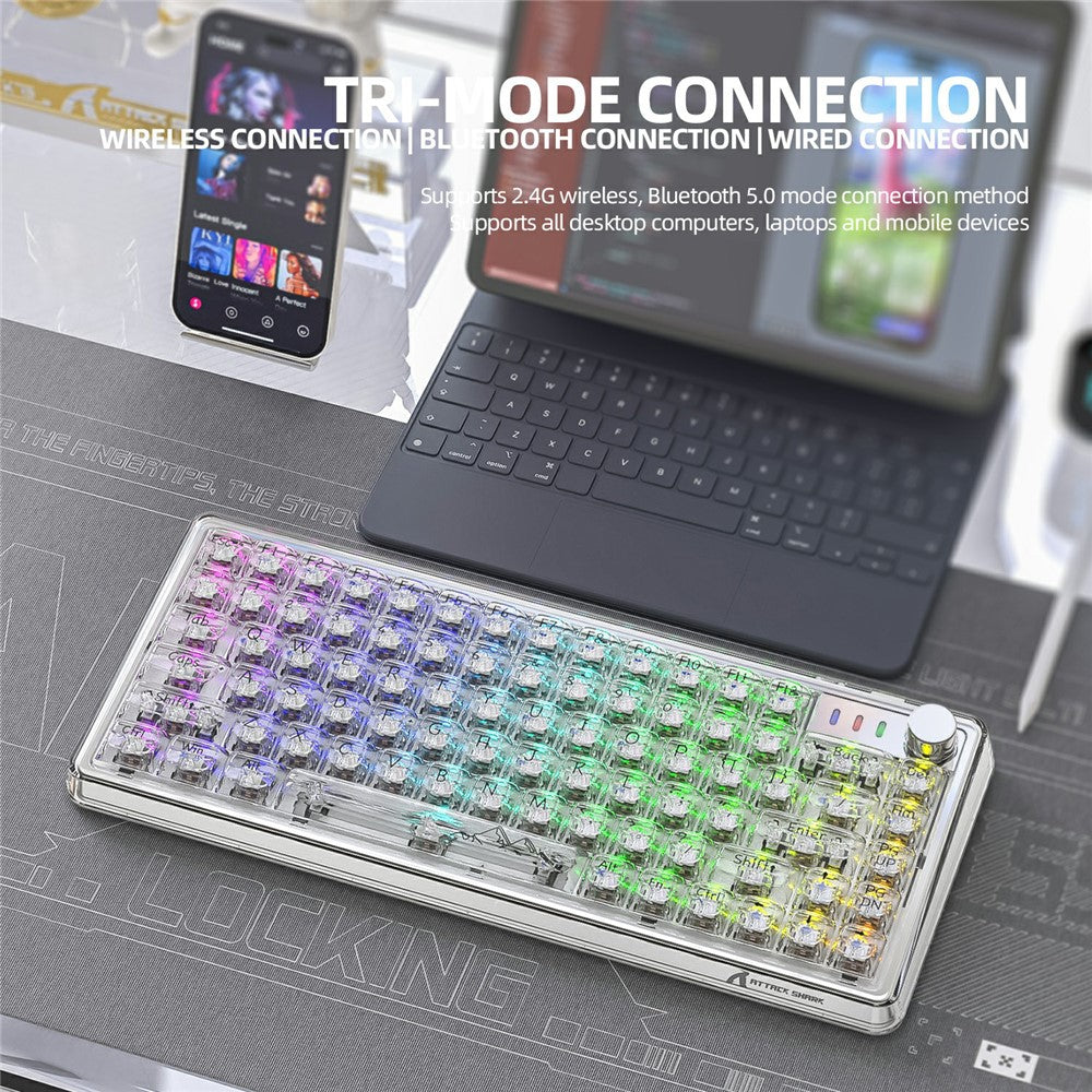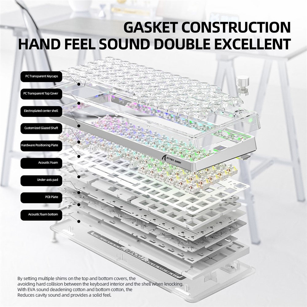 ATTACK SHARK K75 RGB Wireless Hot-Swappable Mechanical Keyboard Three Mode Bluetooth-compatible Transparent Keyboard