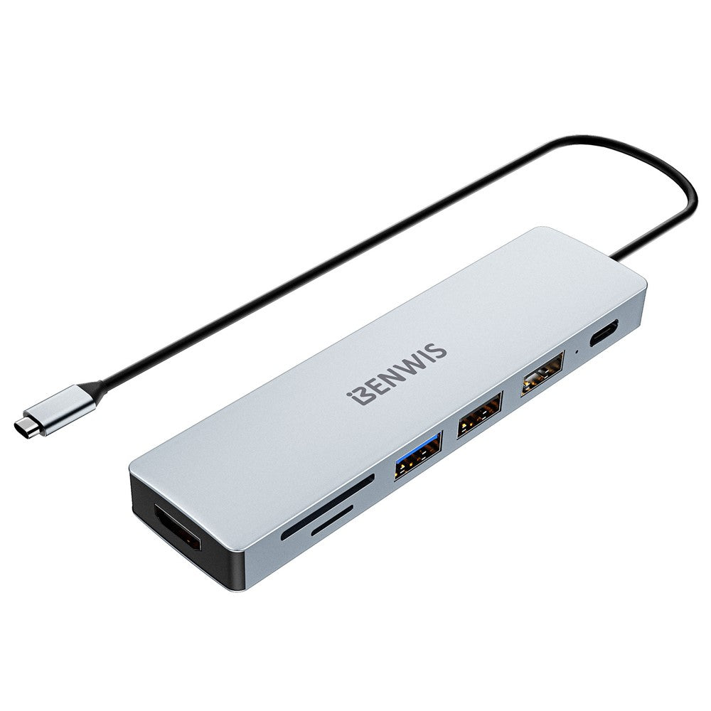 BENWIS MP-HUB-2 7-in-1 Hub Adapter Type-C to PD 100W+USB2.0x2+USB3.0+TF / SDXC+HD 4K 30Hz