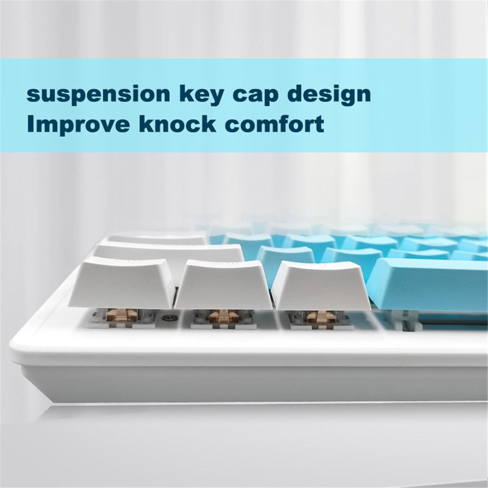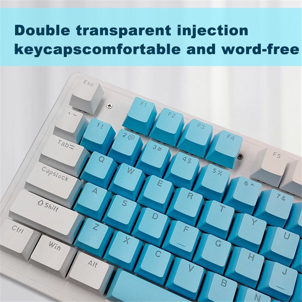 - White and blue double-spell mechanical keyboard. Double transparent injection keycaps are comfortable and word-free
