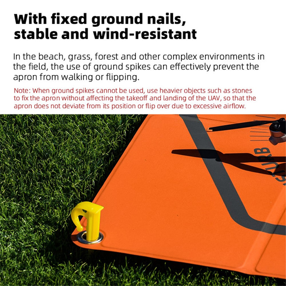 - 1. When ground spikes cannot be used, use heavier objects such as stones to fix the apron without affecting the takeoff and landing of the drone, so that the apron will not deviate from its position or flip over due to excessive airflow.