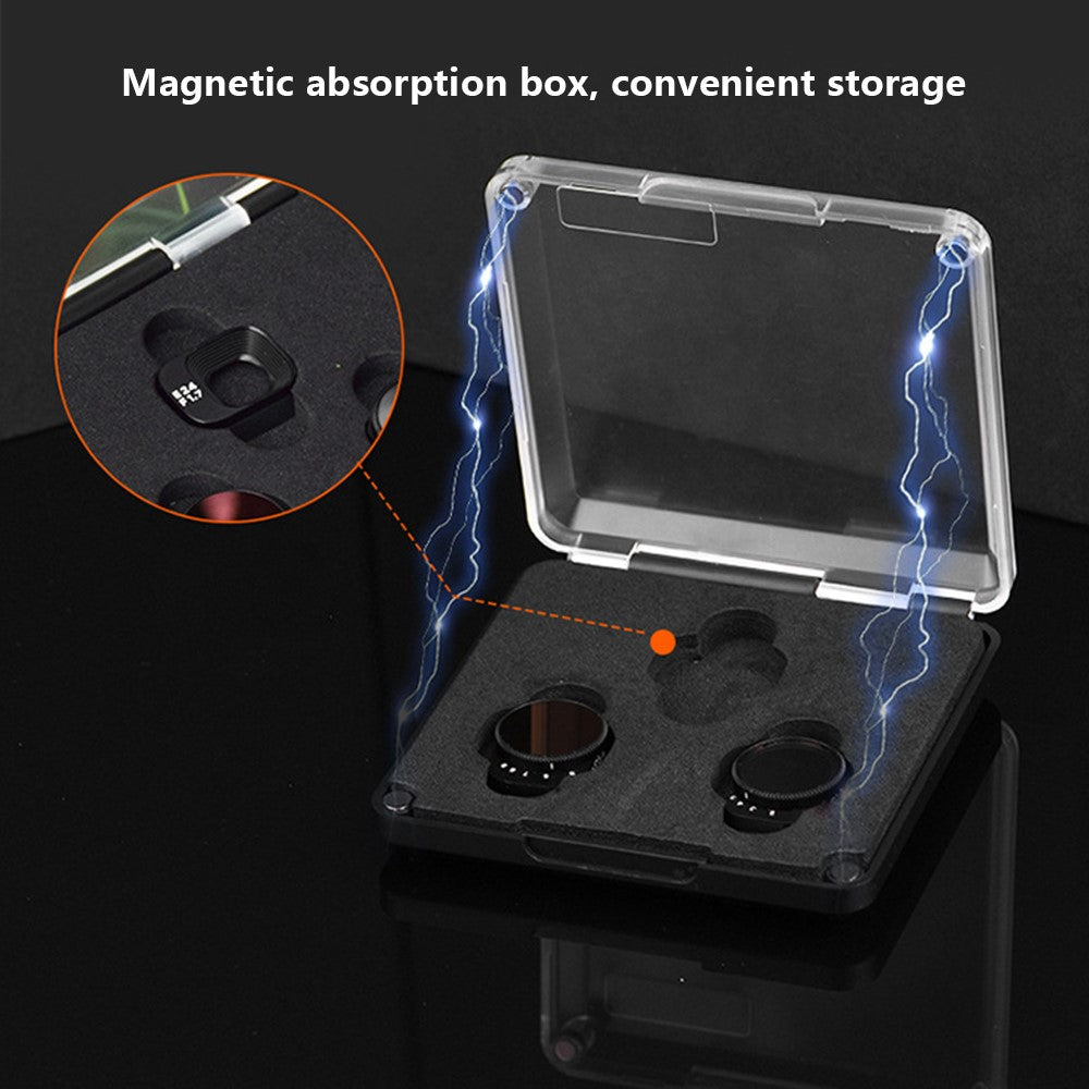 - Comes with a custom-designed magnetic storage box tailored for the filter set; the box includes soft sponge inserts to secure the filters, facilitating easy replacement and storage of the original lens frame