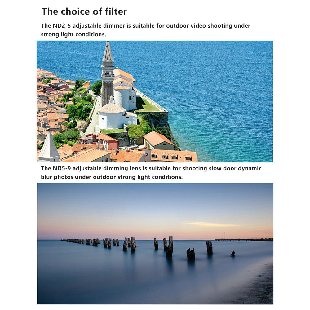- Offers multi-grade adjustments with a single filter; after installation, the filter's gear can be rotated to adjust the level according to scene requirements, eliminating the hassle of frequent disassembly