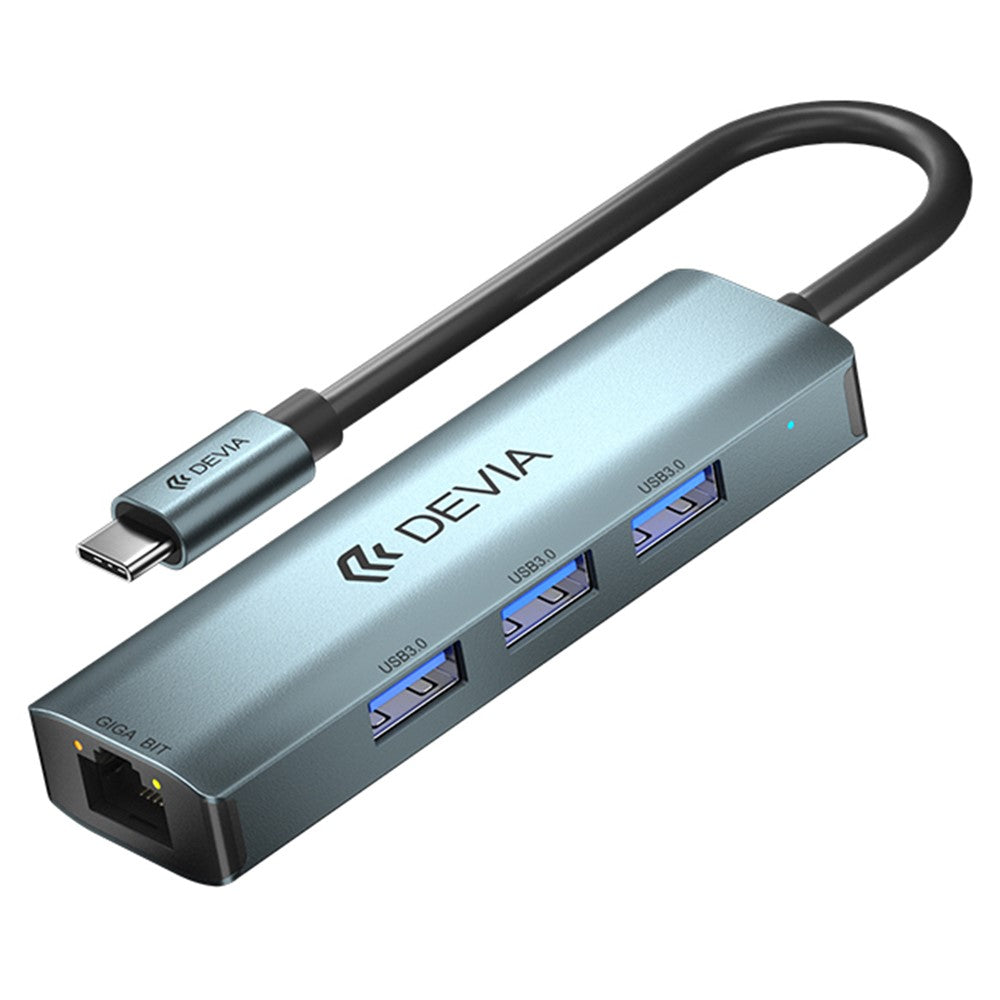 DEVIA EC621 Leopard Series USB-C Docking Station Type-C to USB3.0*3+RJ45, Mini USB 3.1 Hub (Upgraded)