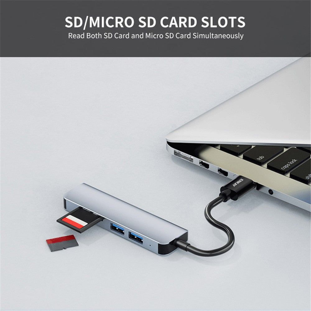 ENKAY HAT PRINCE 5-in-1 USB Hub Multi-Port Adapter Converter to USB3.0 + 2xUSB2.0 + SD / TF Card Reader for Extended Monitor PC Laptop Desktop