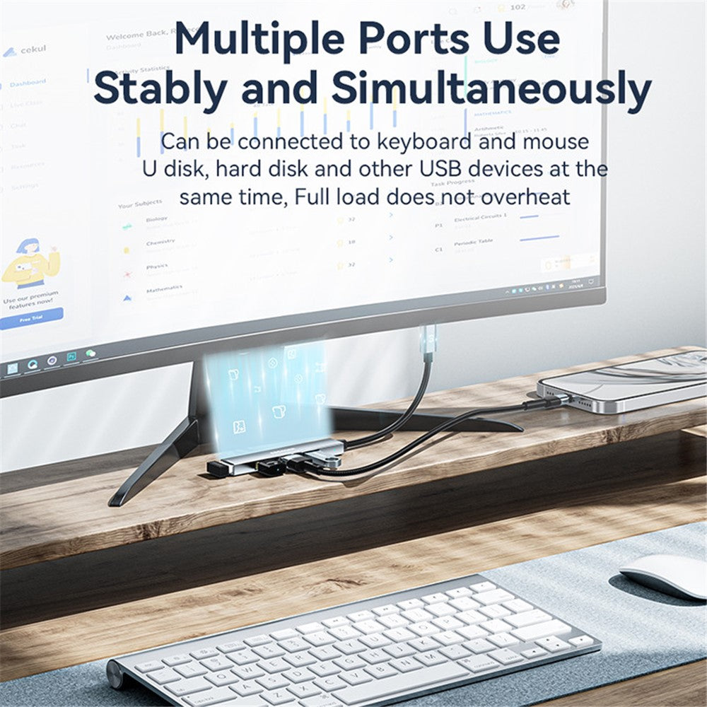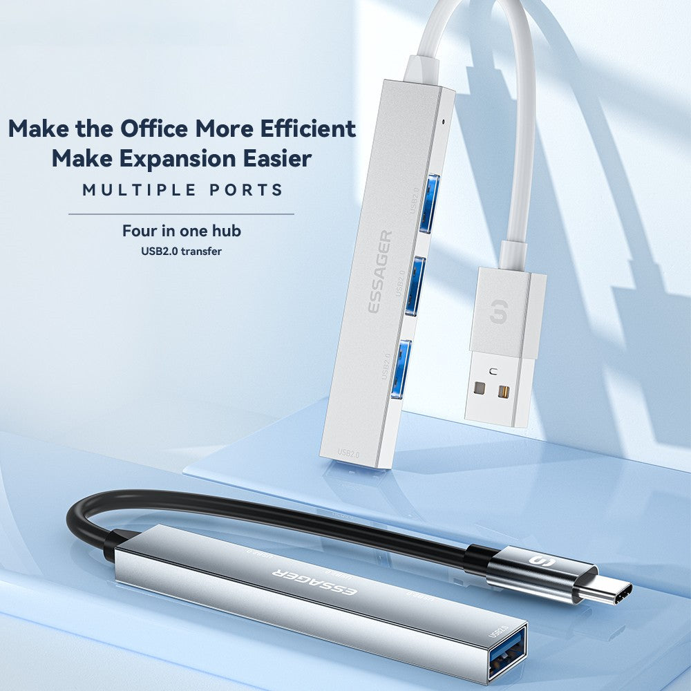 ESSAGER 4-in-1 USB Hub 4 USB2.0 Ports Splitter Tablet Laptop Aluminum Alloy Adapter