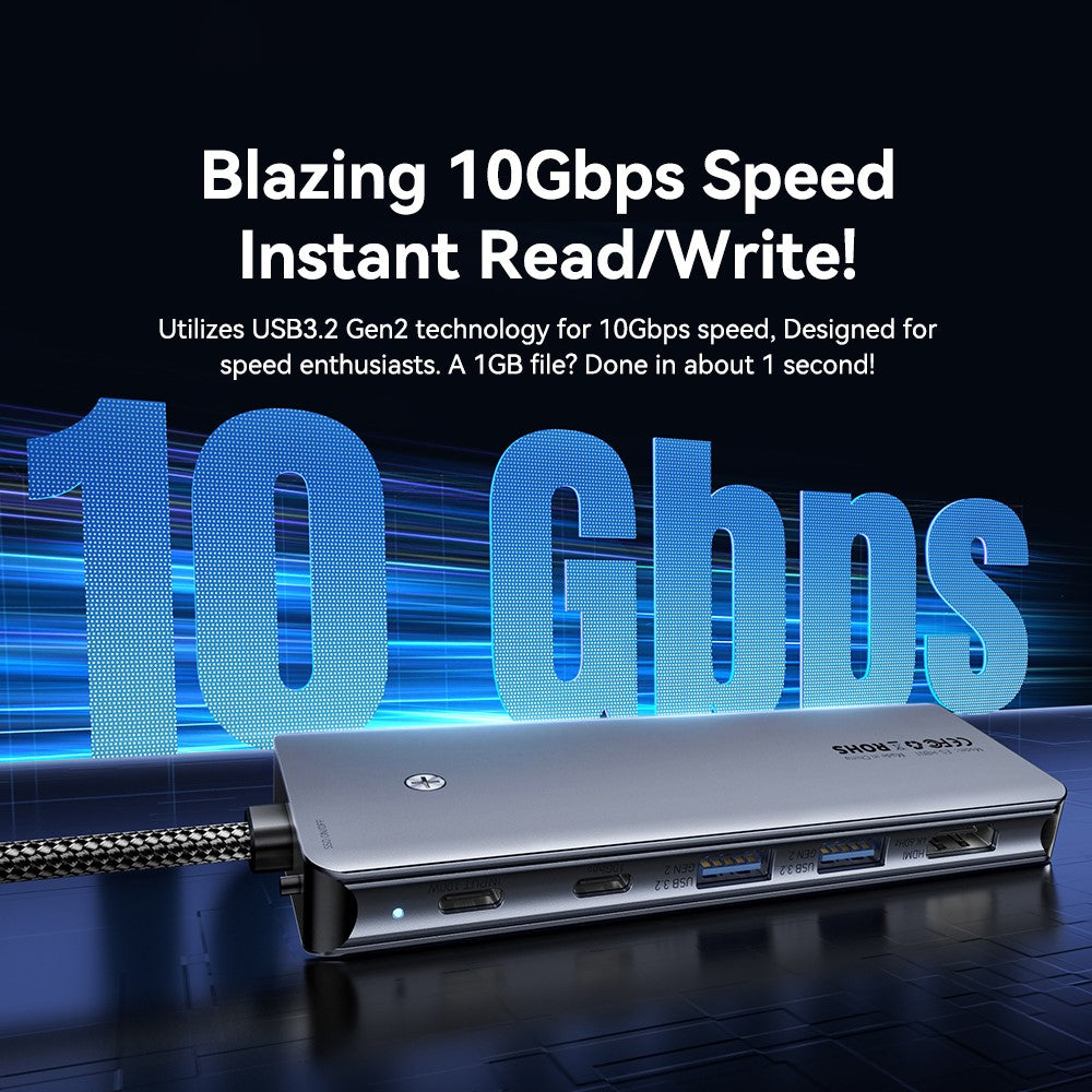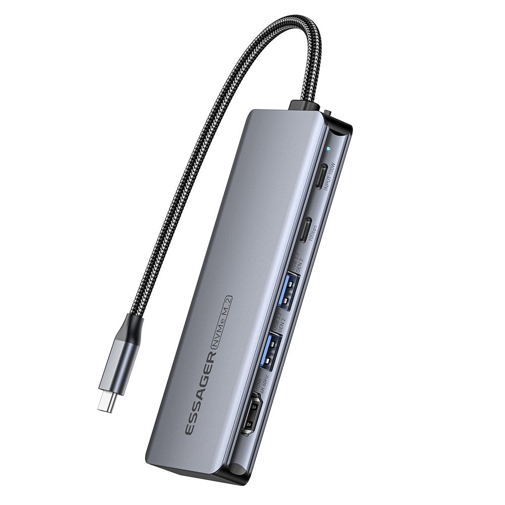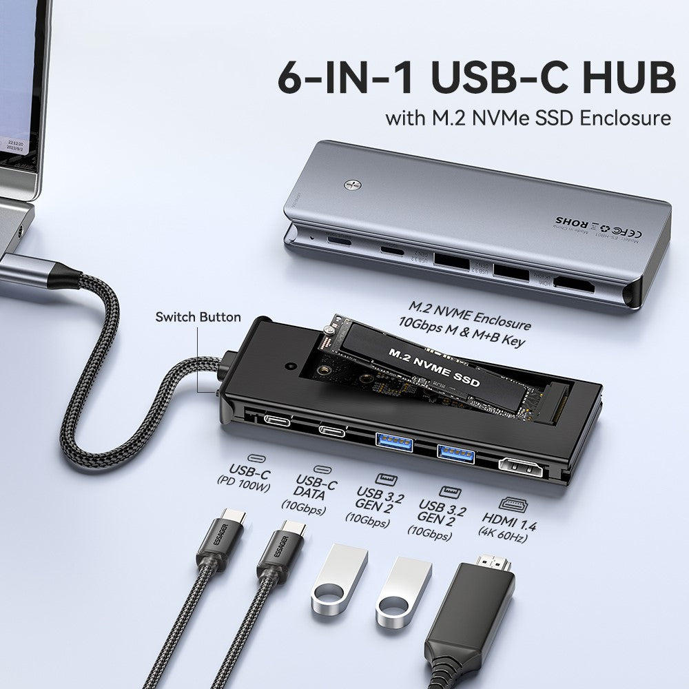 ESSAGER 6-in-1 Docking Station USB Hub Type-C to USB-C Charging + USB-C Data + 2xUSB3.2 + HD + Hard Disk Enclosure