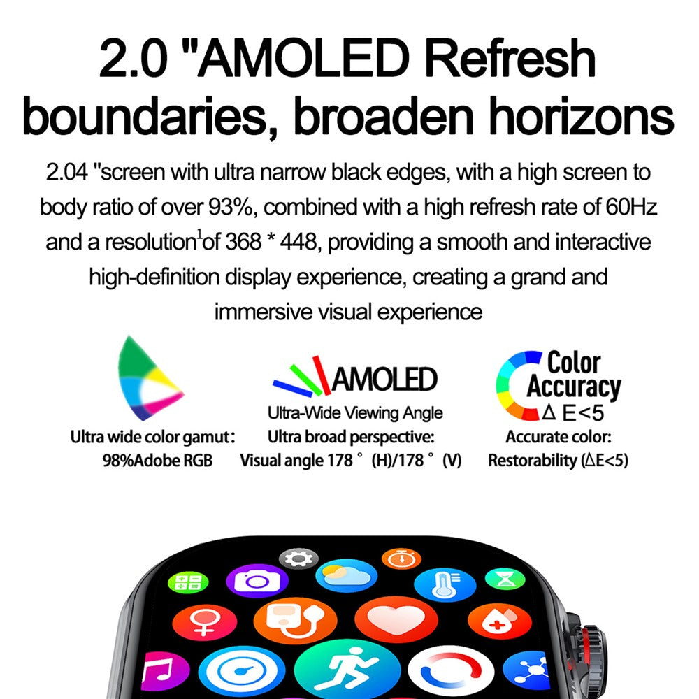Function points | AMOLED full touch screen, Bluetooth-compatible call, ECG, micro-physical examination function, HRV detection, emotion detection, fatigue detection, non-invasive blood sugar monitoring, blood component measurement (uric acid lipid function), body fat BMI measurement, Metoff function, SOS emergency call function, blood oxygen monitoring, blood pressure monitoring, respiratory training, women's health (menstrual tracking), heart rate monitoring, etc, NFC access control, Step counting/calorie/distance, multi-movement mode, alarm clock, information screen display function, weather forecast, intelligent voice assistant, game, flashlight, music playback and control |