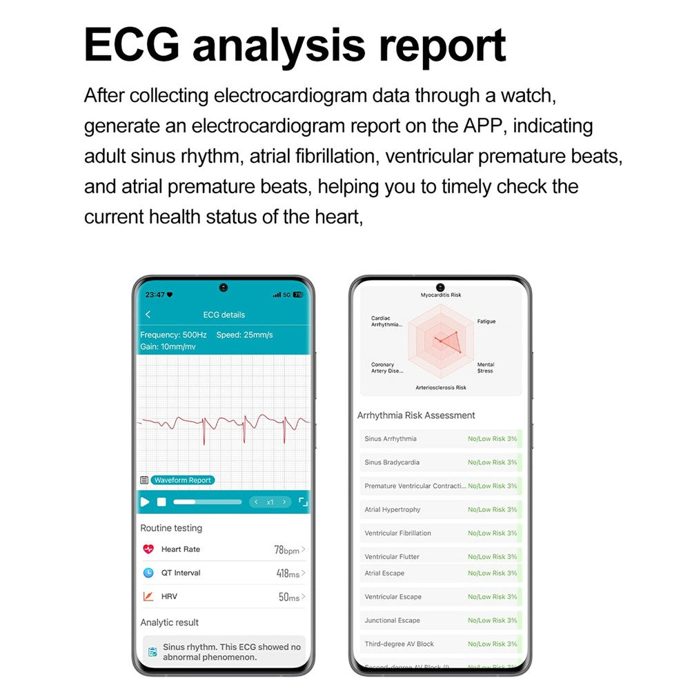 - 【Advanced Health Monitoring】Equipped with ECG (electrocardiogram) functionality for comprehensive heart health tracking