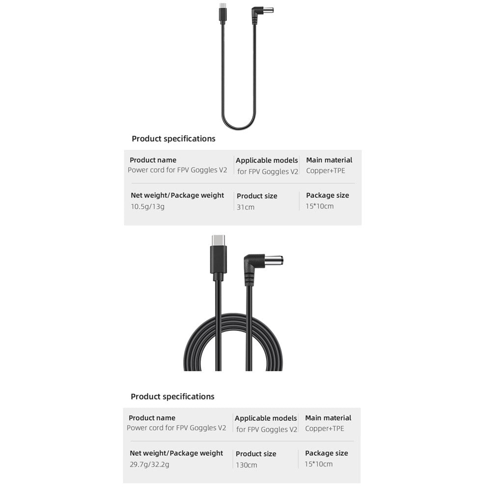EWB8746_1+EWB8475 Battery Power Supply Cable Cord with Short Back Clip for DJI FPV Goggles V2