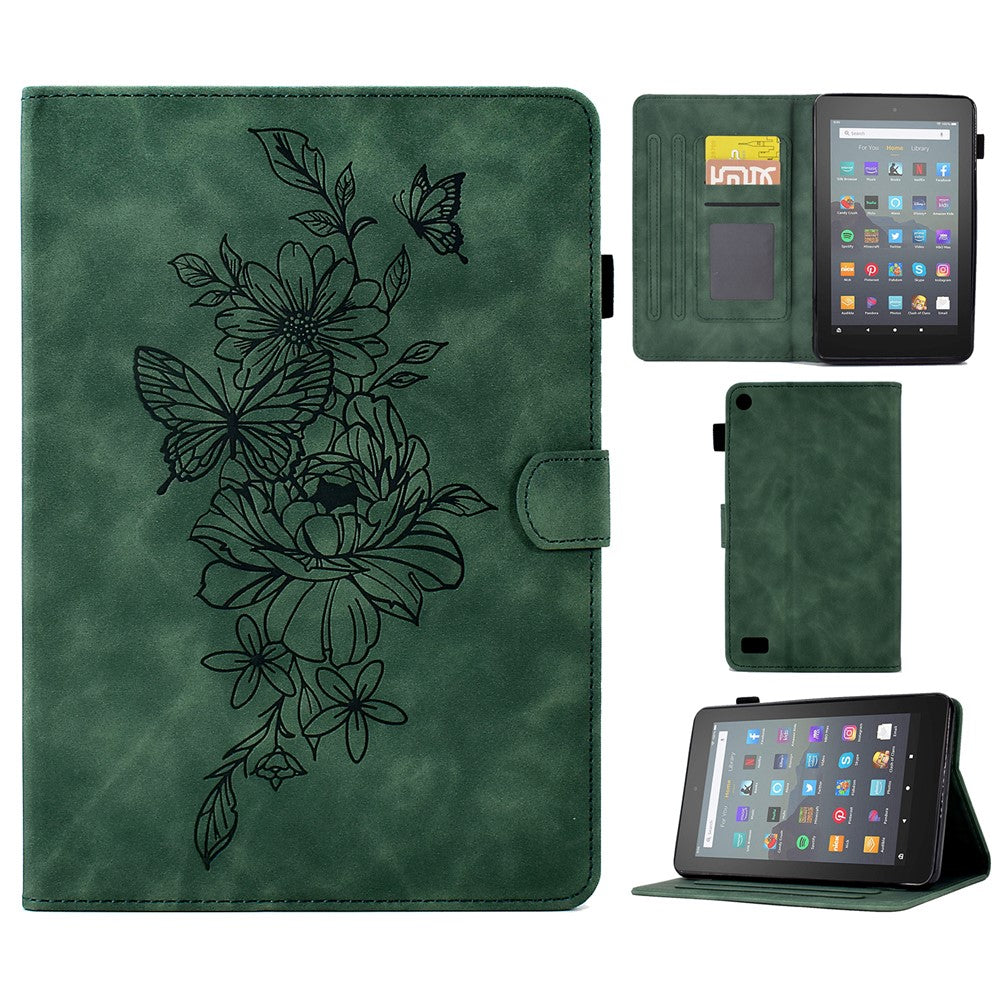 For Amazon Fire 7 (2015) / (2017) / (2019) Butterfly Flower Pattern Imprinted Magnetic Flip Protection Cover PU Leather Stand Card Holder Tablet Case with Auto Wake / Sleep