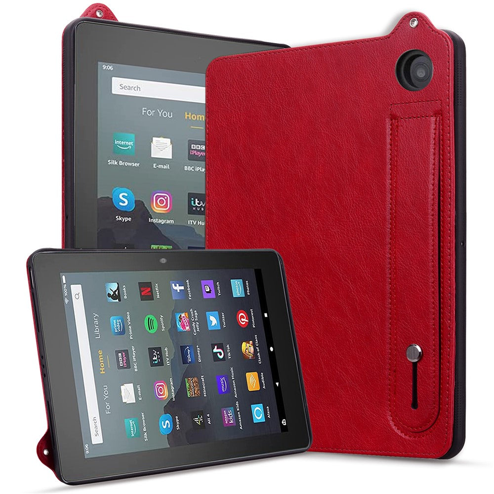 For Amazon Fire 7 (2022) Case Hand Strap Kickstand Leather Tablet Cover