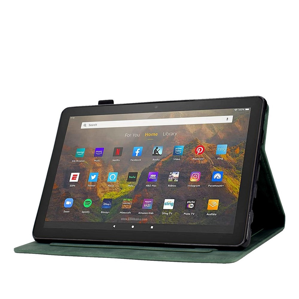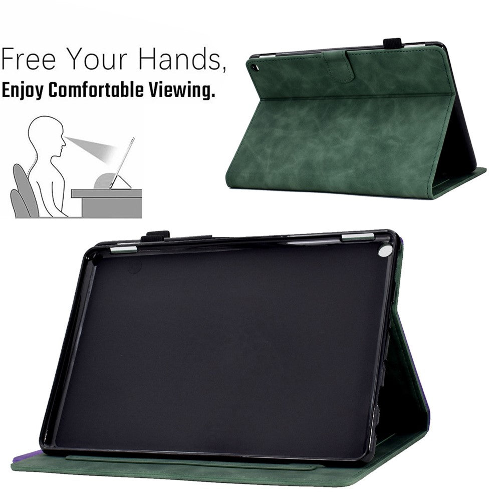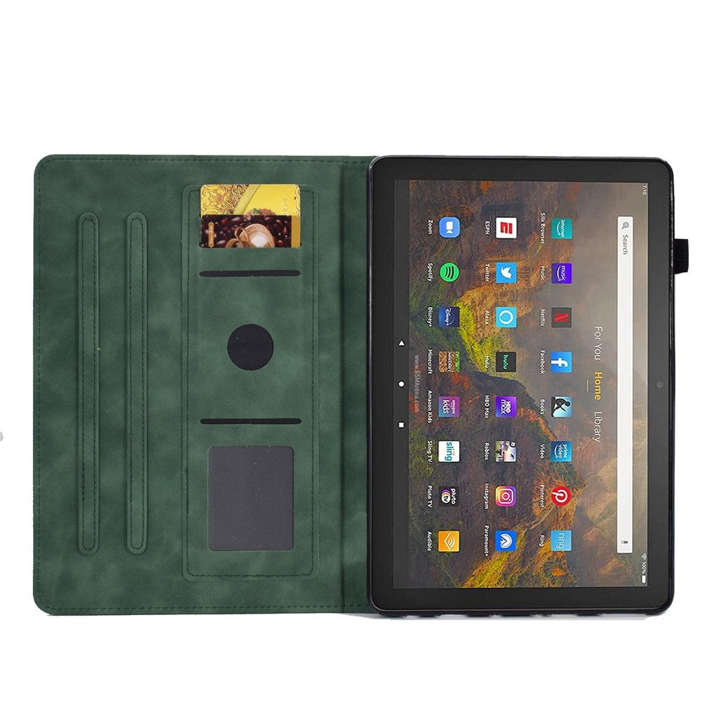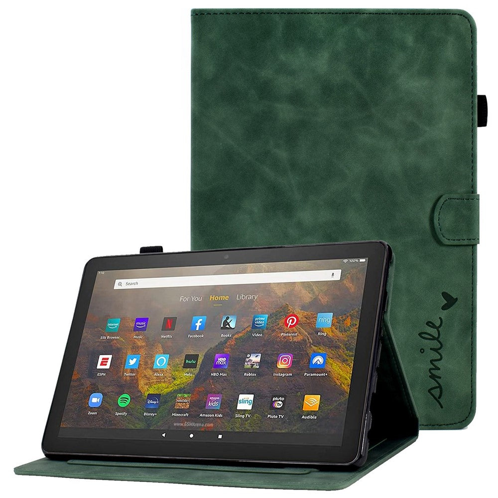 For Amazon Fire HD 10 (2021) Solid Color Heart Shape Imprinted PU Leather Cover Foldable Stand Protective Case with Card Slots