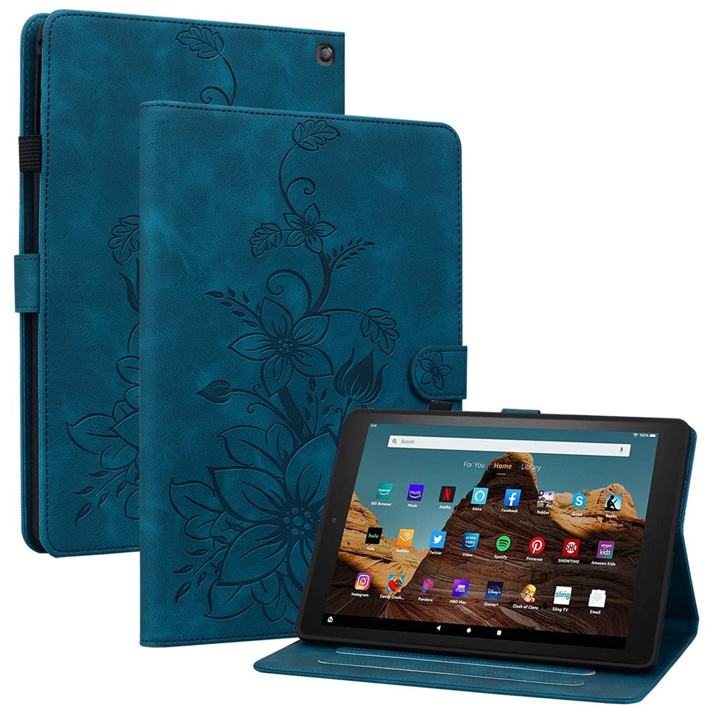 For Amazon Fire HD 10 (2023) Case with Card Slots Leather Tablet Cover Lily Flower