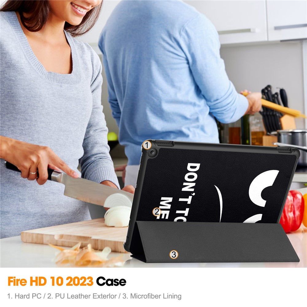 For Amazon Fire HD 10 (2023) PU Leather Tablet Case Tri-fold Stand Pattern Printing Tablet Cover