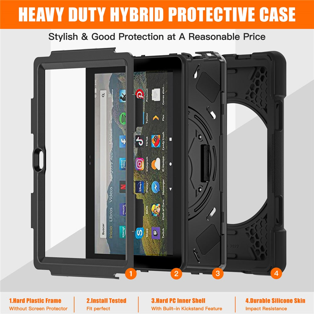 For Amazon Fire HD 8 (2022) / HD 8 (2024) Kickstand PC + Silicone Tablet Case 360 Degree Rotation Hand Strap Drop Resistant Rugged Protective Cover