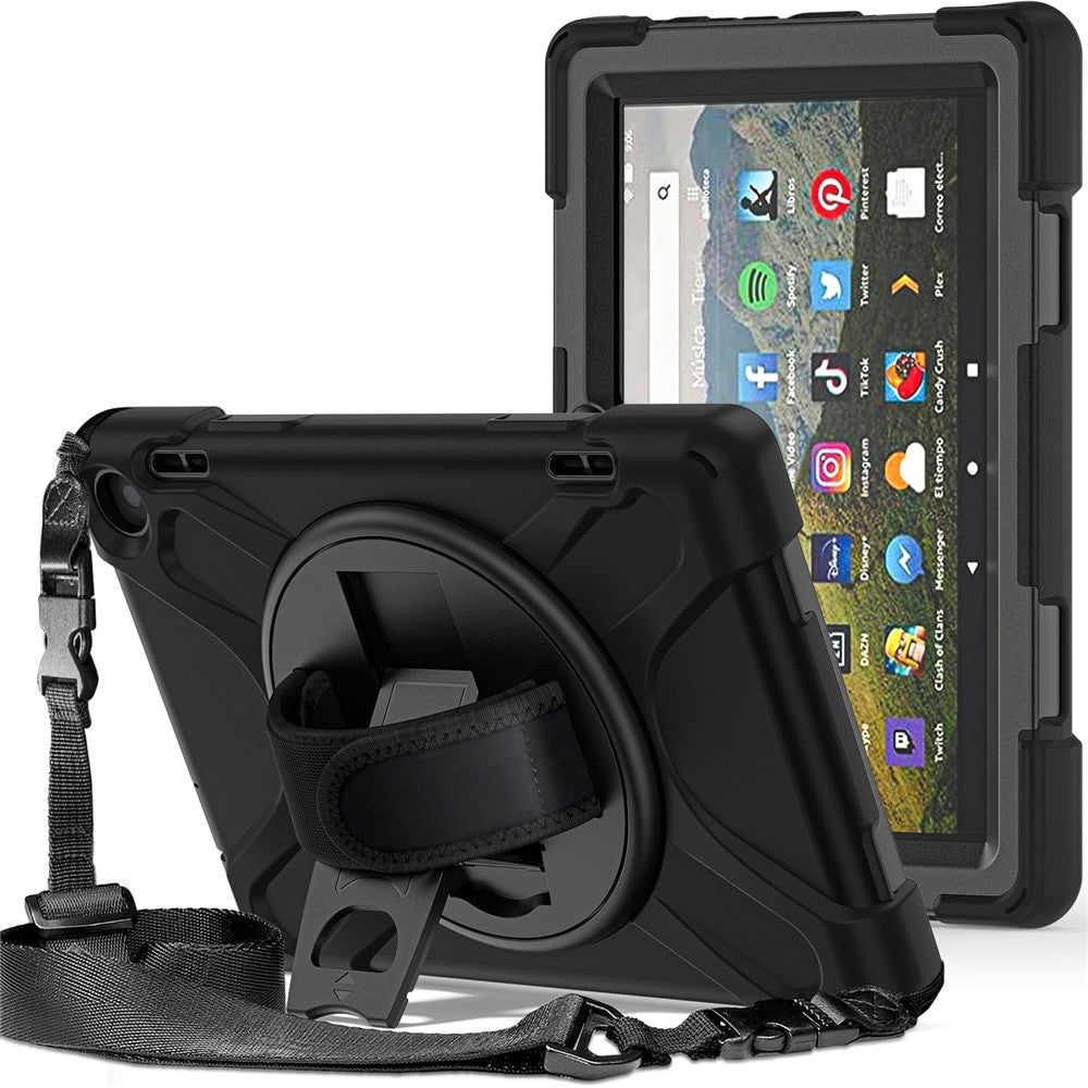For Amazon Fire HD 8 (2022) / HD 8 (2024) Kickstand Tablet Case 360 Degree Rotation Hand Strap PC + Silicone Protective Cover with Shoulder Strap