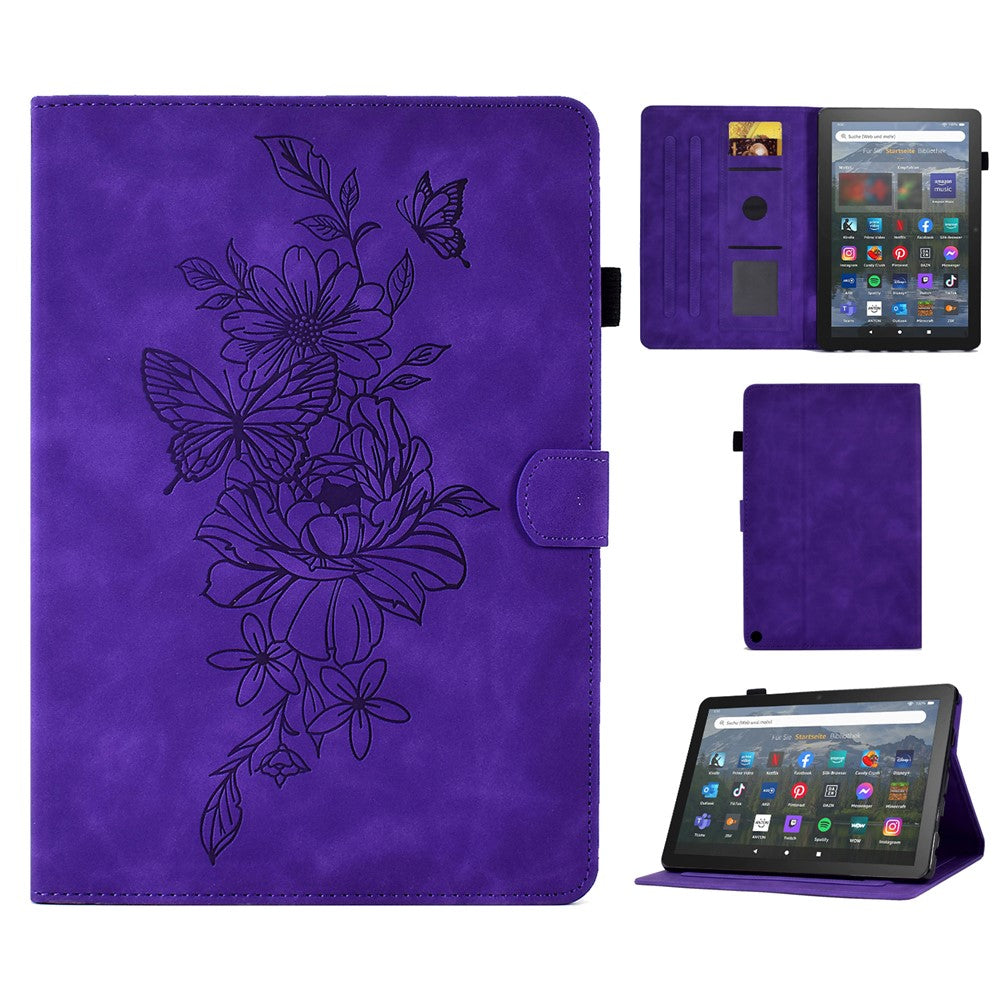 For Amazon Fire HD 8 (2022) / HD 8 Plus (2022) PU Leather Stand Function Card Slots Tablet Case Butterfly Flower Pattern Imprinted Auto Sleep / Wake Cover