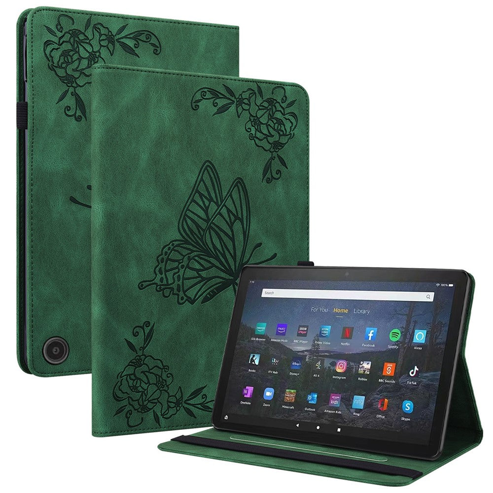 For Amazon Fire Max 11 PU Leather Tablet Case Imprinted Butterfly Flower Stand Flip Cover with Card Holder