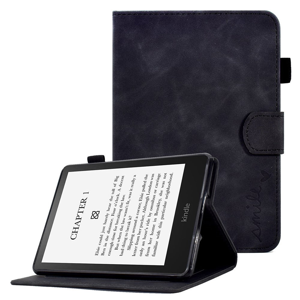 For Amazon Kindle Paperwhite (2015) / 2 (2015) / 3 (2015) / 4 (2018) Heart Shape Imprinted Solid Color PU Leather Flip Stand Protective Case with Card Slots