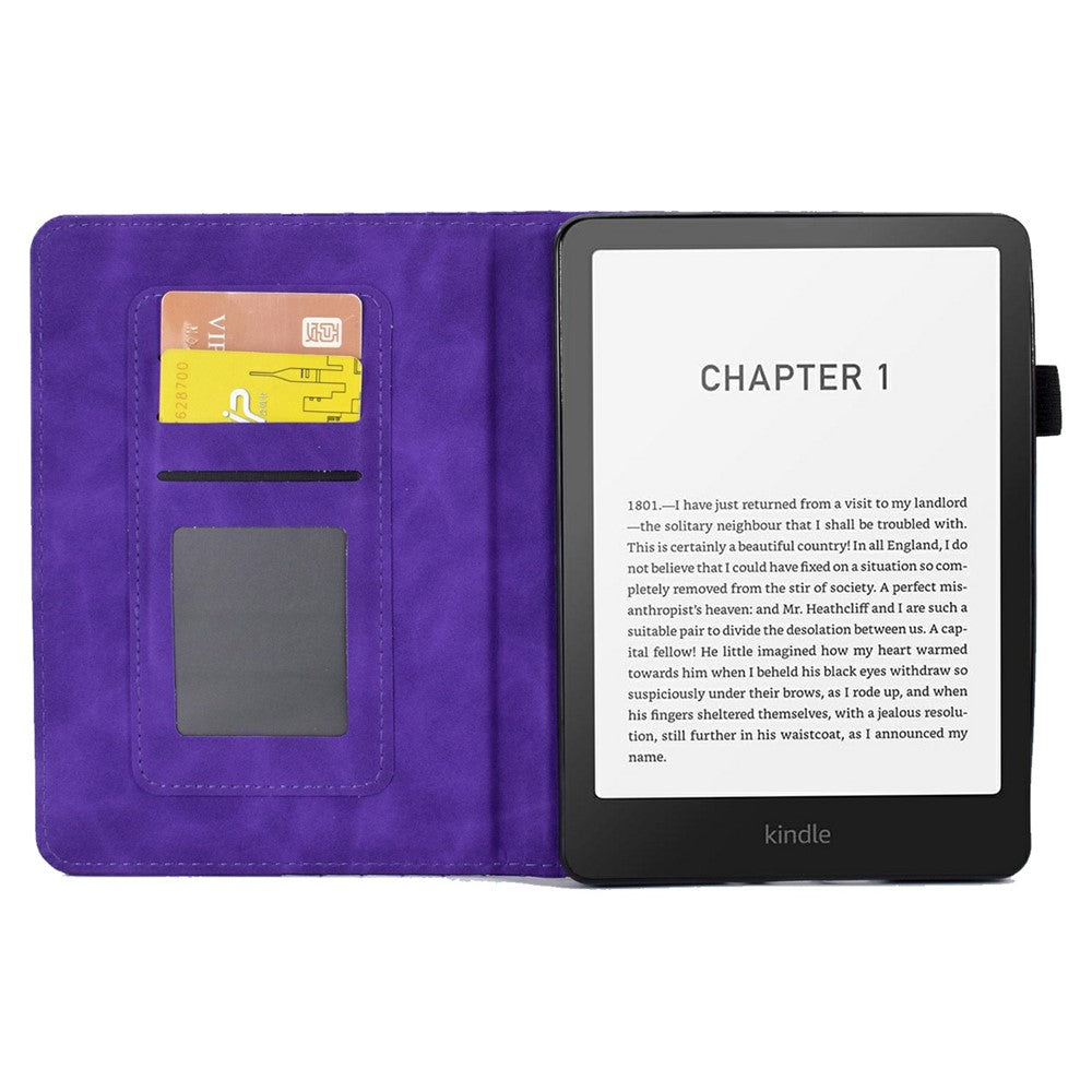 For Amazon Kindle Paperwhite (2024) Case Card Slots Leather Cover Block Pattern