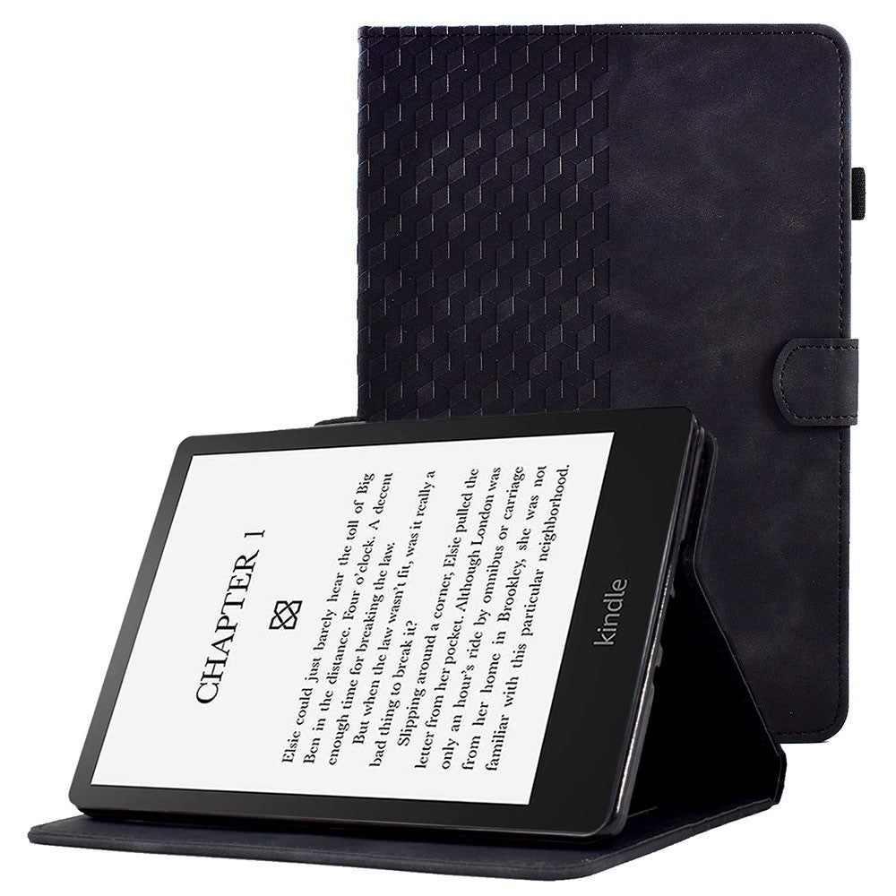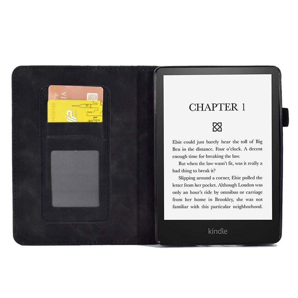 For Amazon Kindle Paperwhite 5 (2021) Anti-Drop Leather Case Auto Wake / Sleep Shockproof Cover Solid Color Pattern Imprinted Tablet Protector with Card Slots / Stand