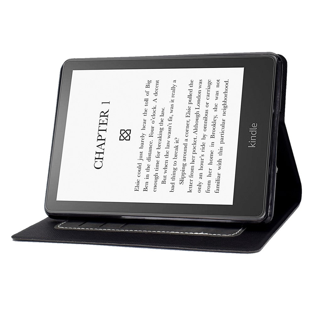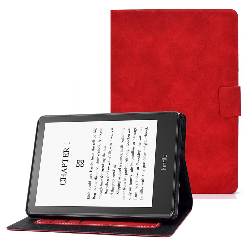 For Amazon Kindle Paperwhite 5 (2021) Solid Color Cowhide Texture PU Leather Stand Cover Card Slots Design Drop-proof Case