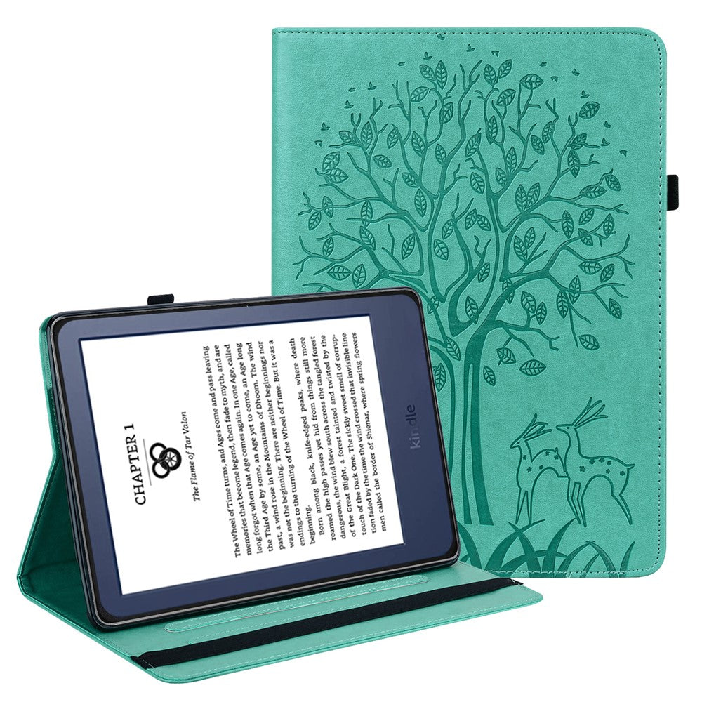 For Amazon Kindle Paperwhite 6 (2022) PU Leather Tablet Case Tree Deer Imprinted Stand Cover with Card Holder