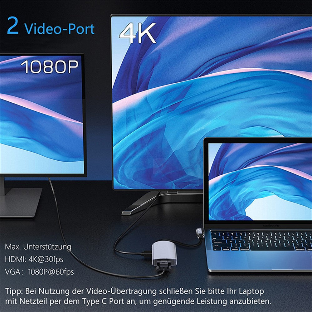 FX-1939C Docking Station Type-C to USB-C + 4xUSB2.0 + SD / TF Card Slot + 3.5mm + 4K HD + VGA + RJ45 USB Hub Adapter