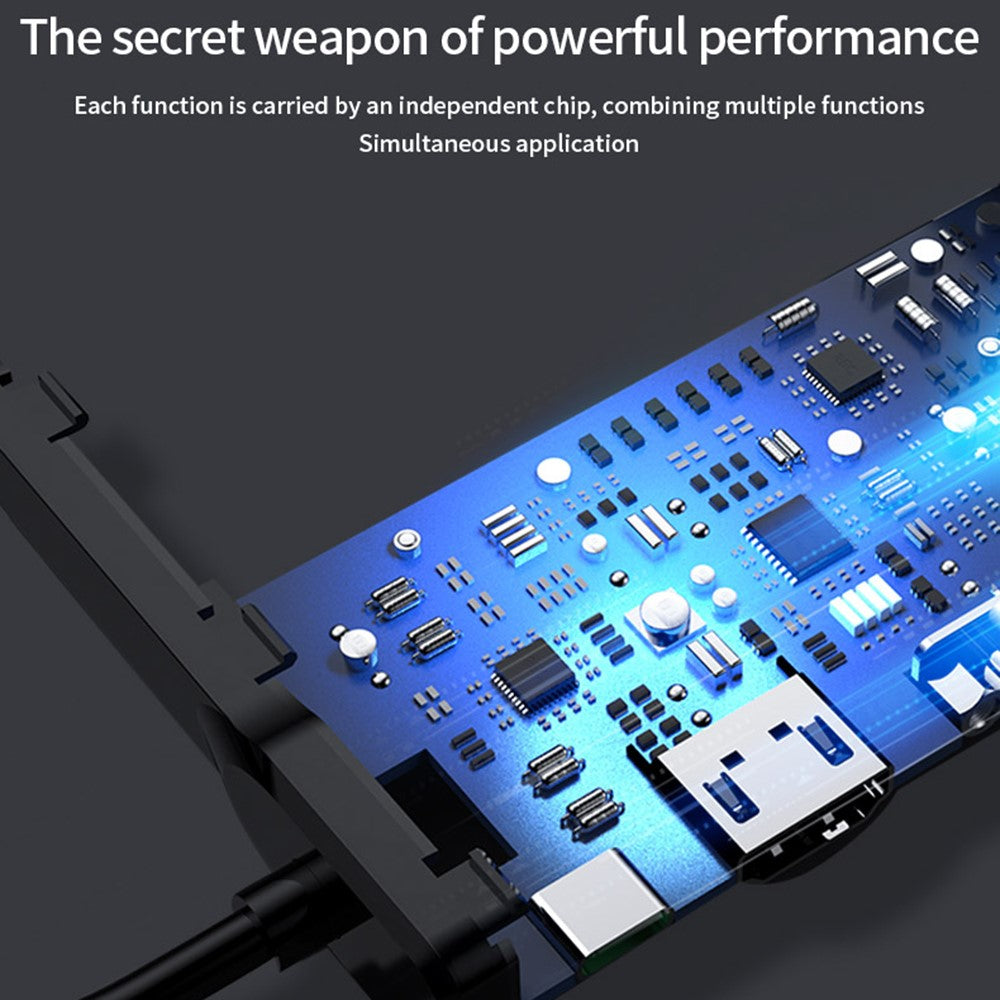 - Powerful USB-C PD & High-Speed Data Transfer: With a 100W USB-C PD port for fast charging and USB-C 3.0 with 5Gbps data transfer, this hub allows quick charging of your devices while maintaining ultra-fast data transfer speeds. Stay connected and powered throughout your day