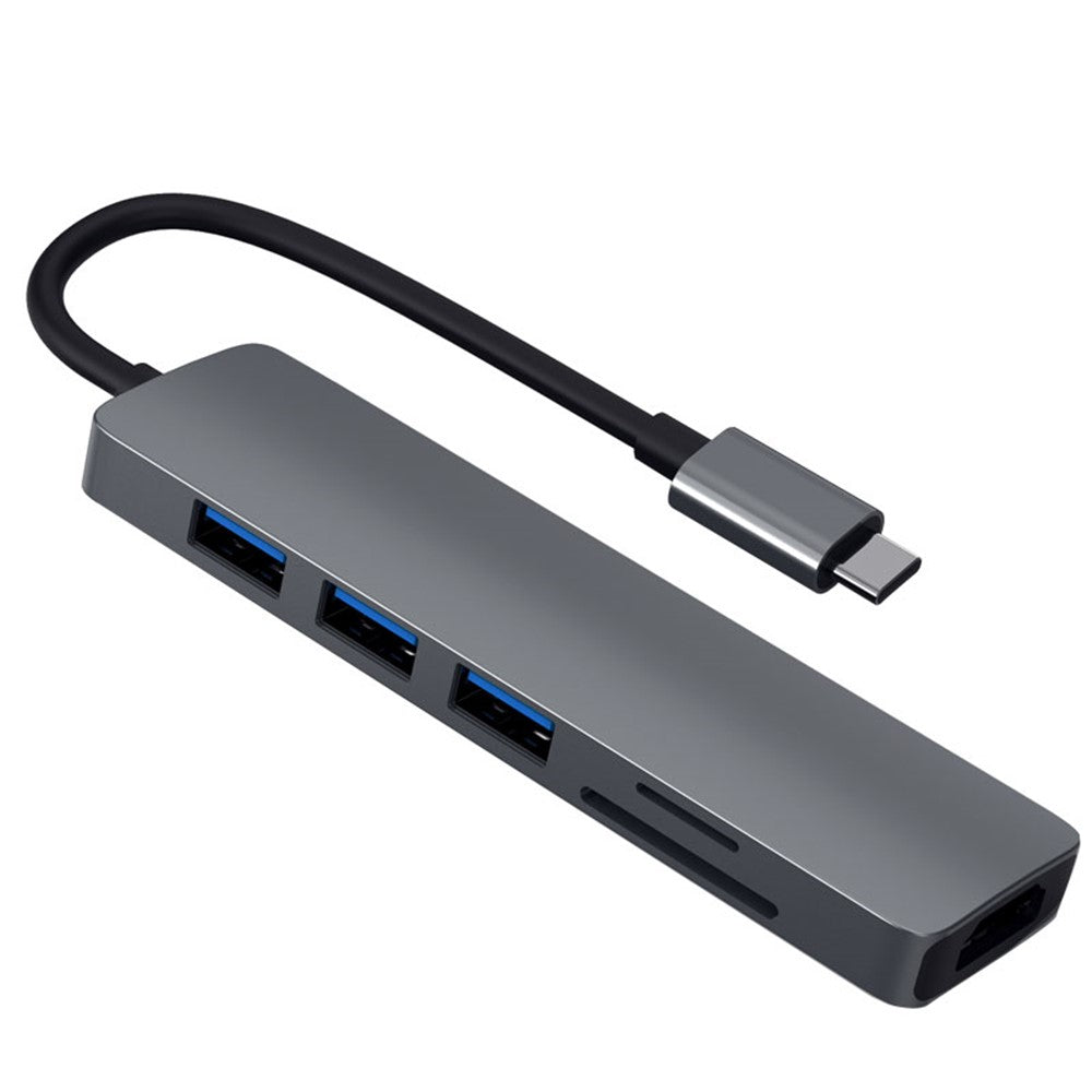 HC-13 Type-C 6-in-1 Hub Splitter 4K HDMI USB3.0 / 2.0 TF SD Card Reader Laptop Adapter Docking Station