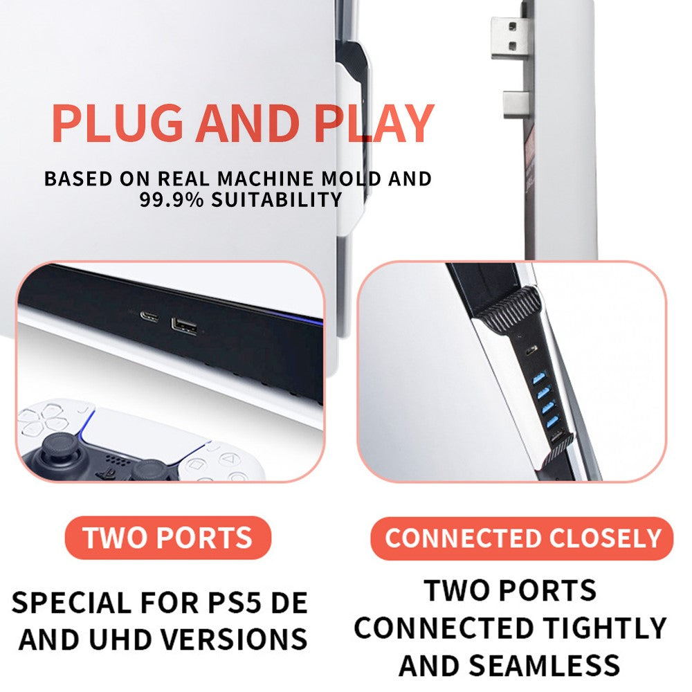 HONSON USB Hub Splitter Expansion Docking Station for PS5 Console