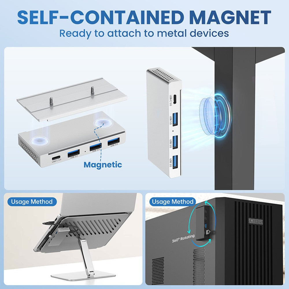 - 【Magnetic Rail Design】The unique magnetic rail system allows for flexible positioning and easy attachment of the USB hub to your workspace.