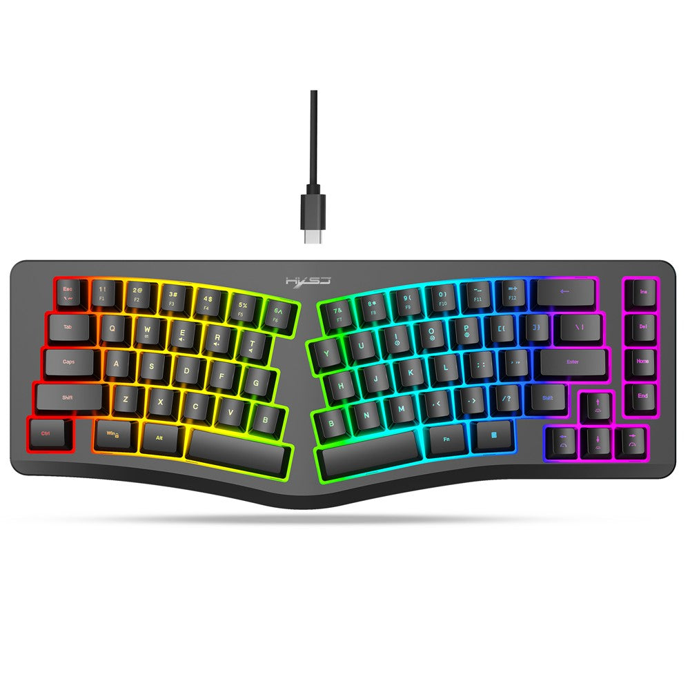 HXSJ J70 Ergonomic 69 Keys Wired Keyboard for Desktop Laptop Membrane Gaming Keyboard with RGB Backlit